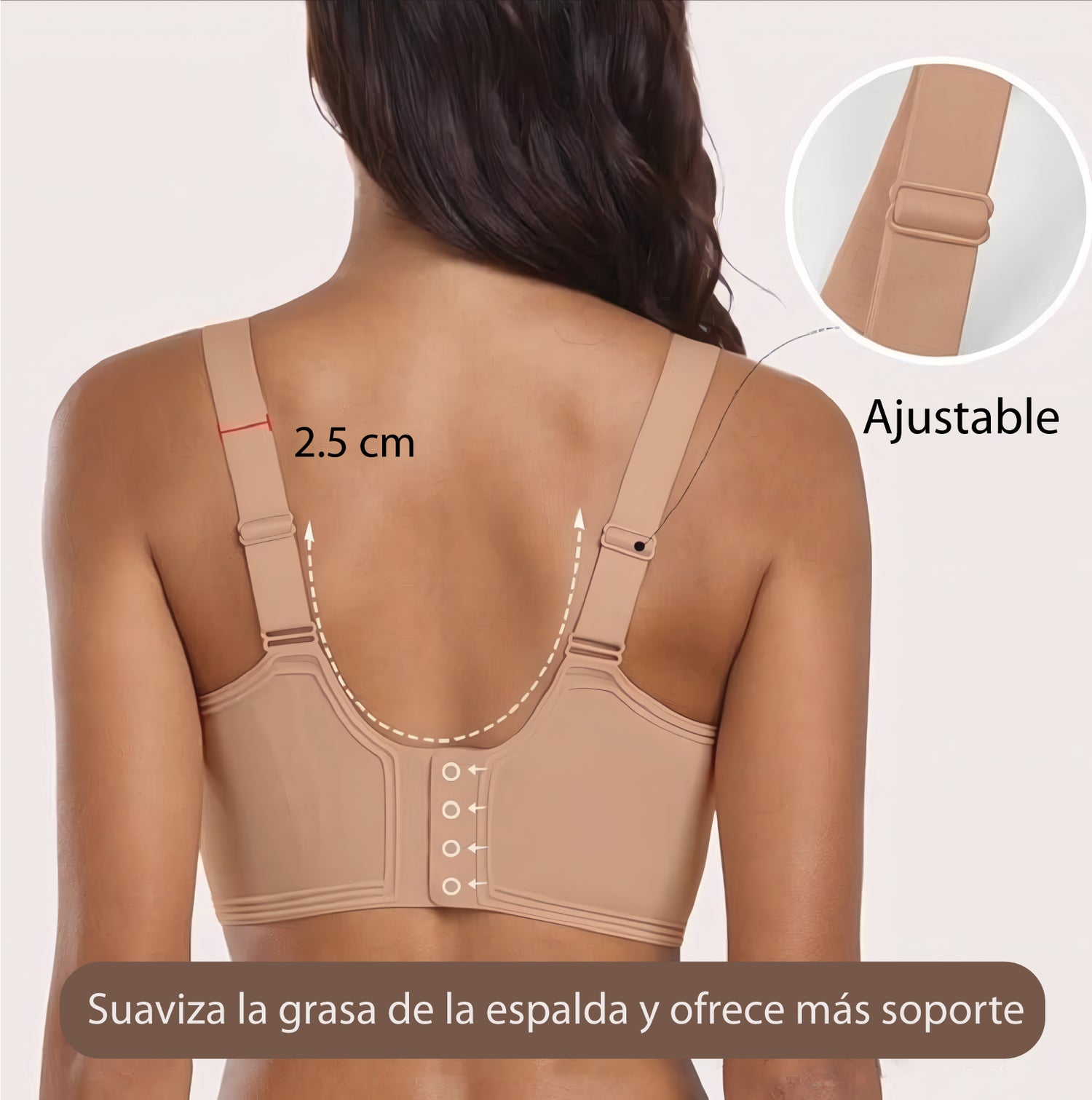 Ofrece más soporte con ganchos traseros de 4 filas, con las tiras del hombro ajustables y sin las molestas tiras laterales.
